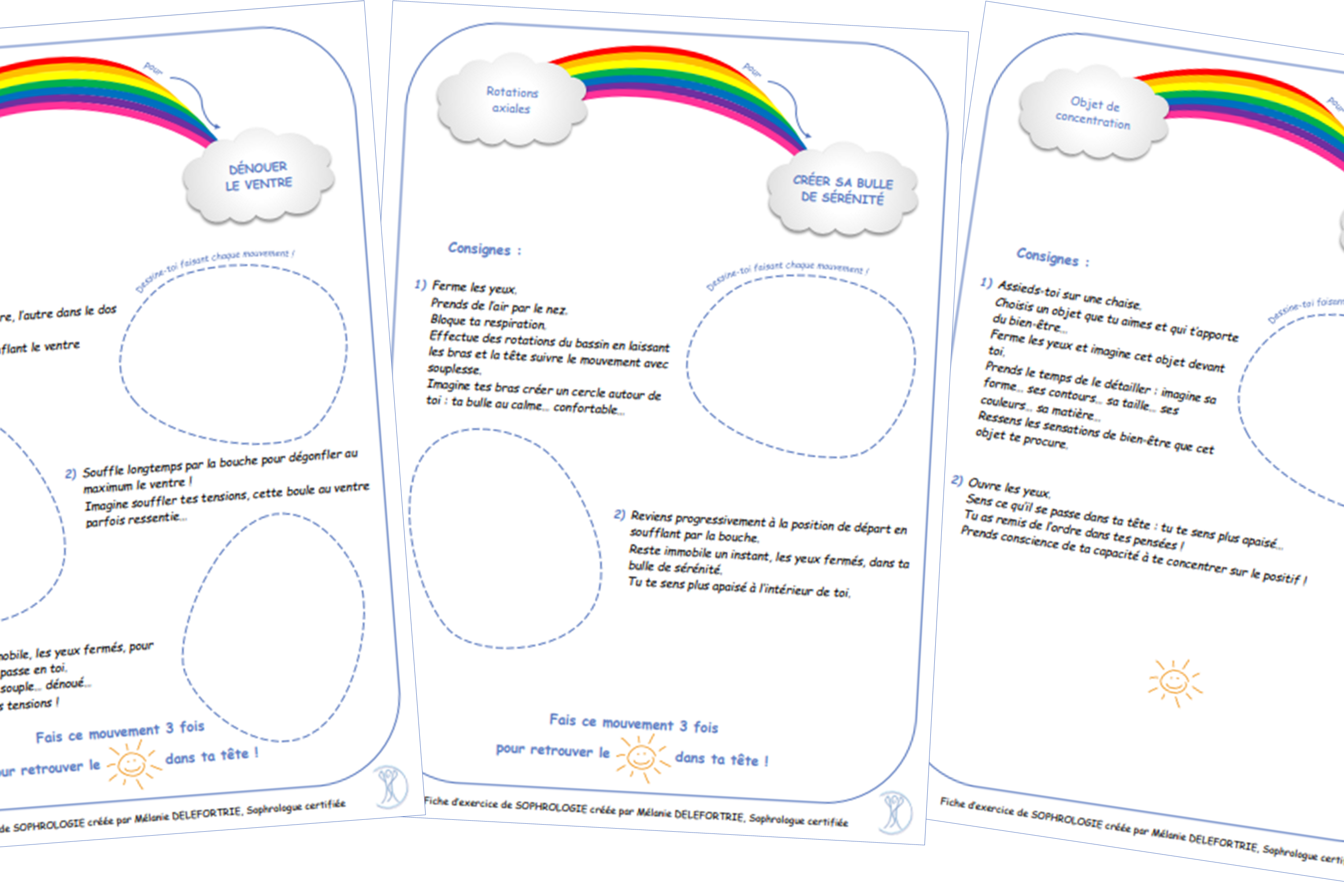 En tant que sophrologue, il n’est pas toujours facile de maintenir la motivation des enfants dans leur entraînement inter-séance. C’est pourquoi j’ai créé des fiches d’exercices de relaxation dynamique :